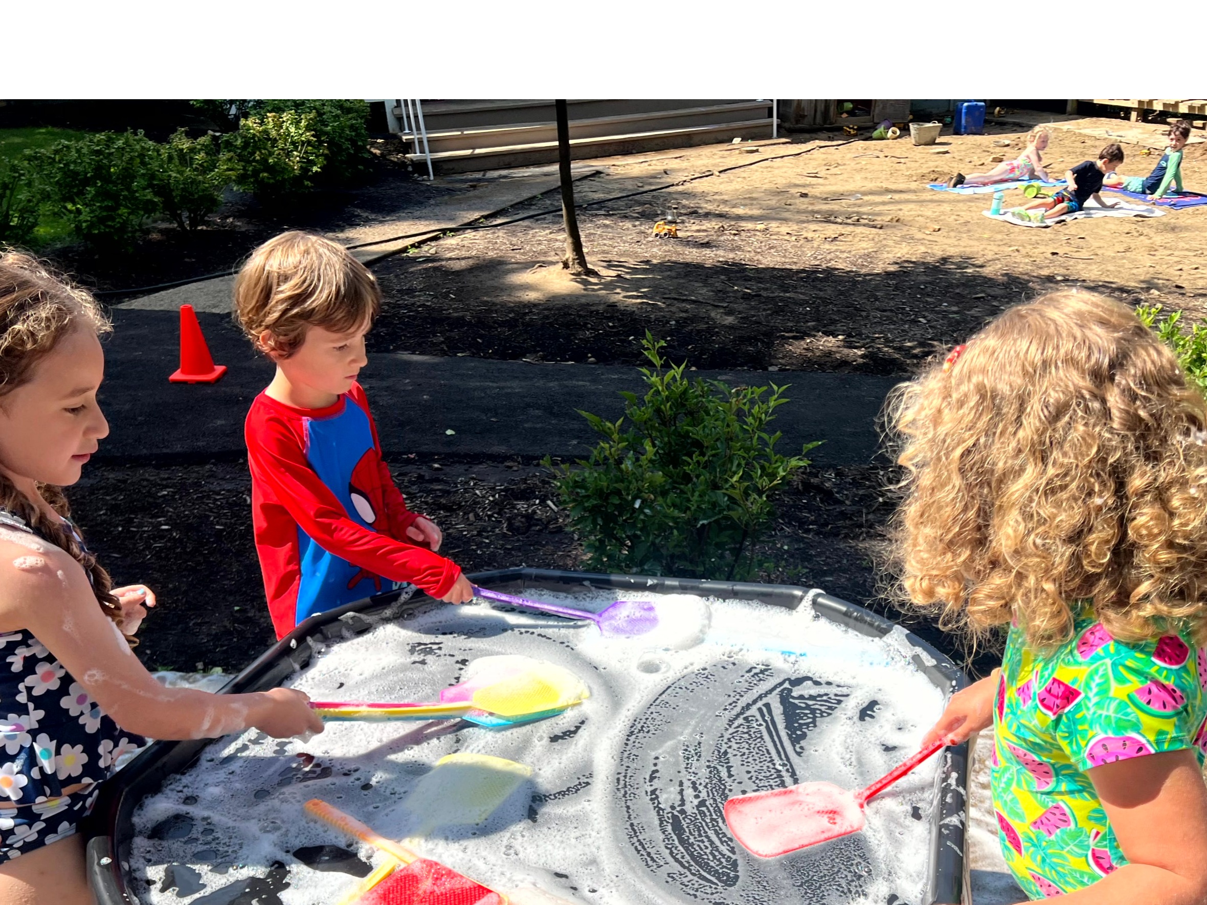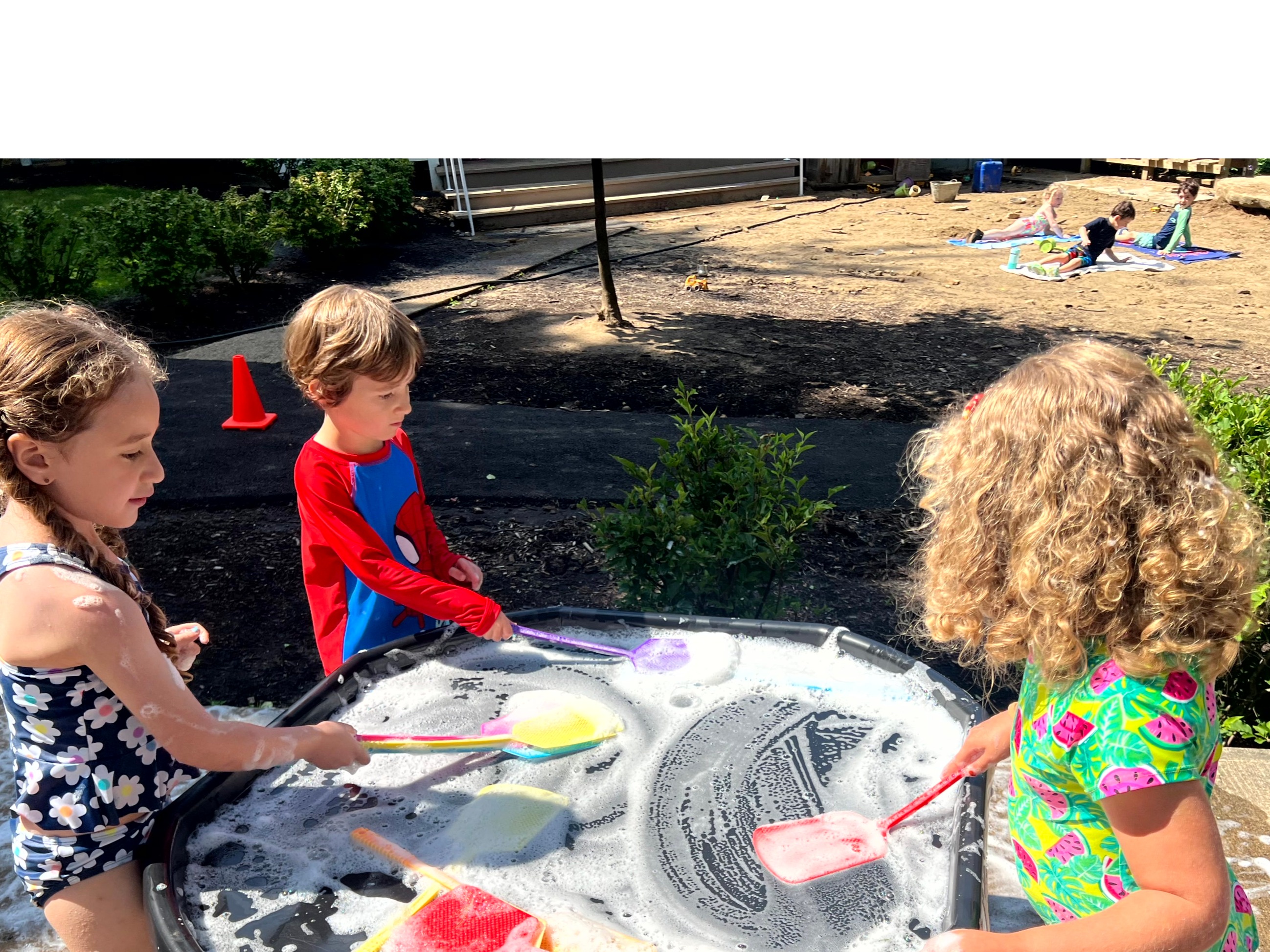 Our Discovery kids spend their days exploring our 7 acre nature campus - climbing in our nature playground, building forts in the woods, creating art, playing group games, and having water fun!